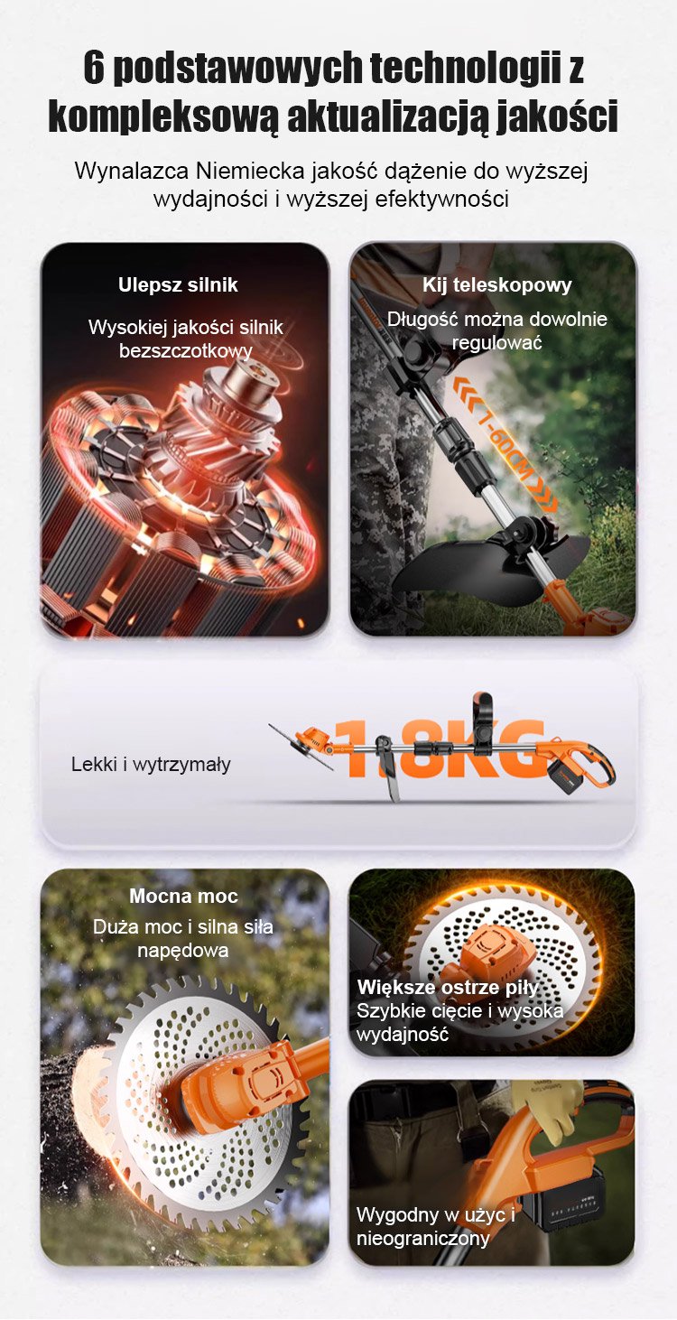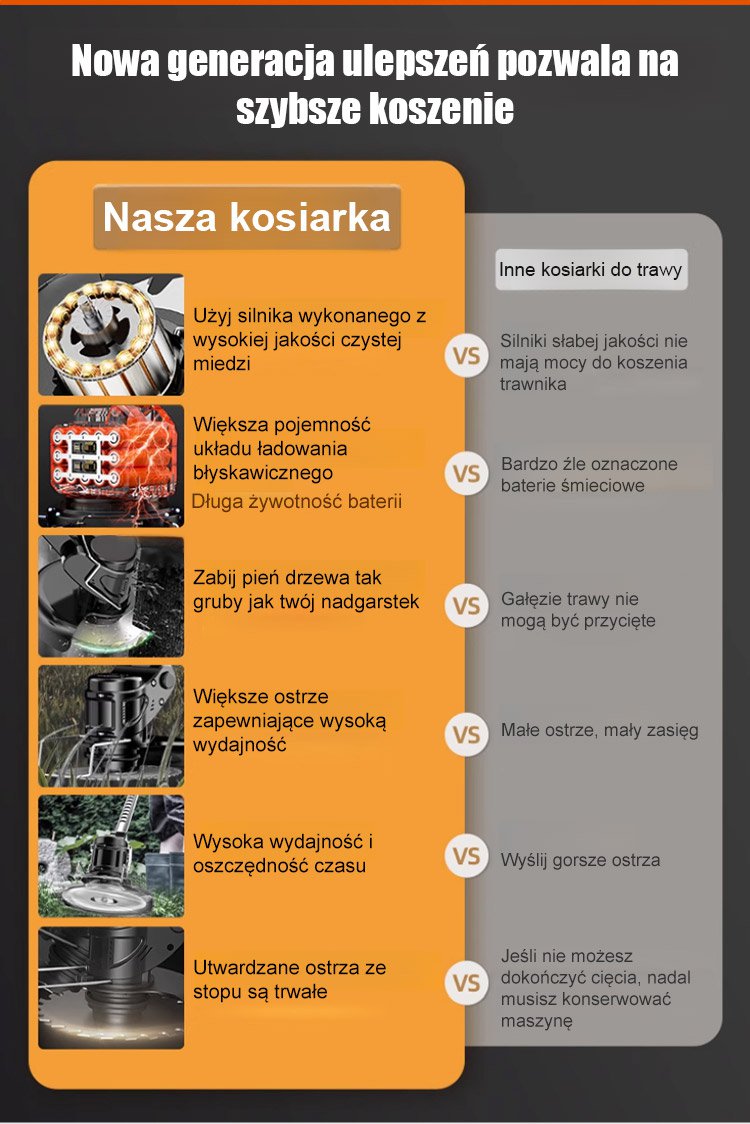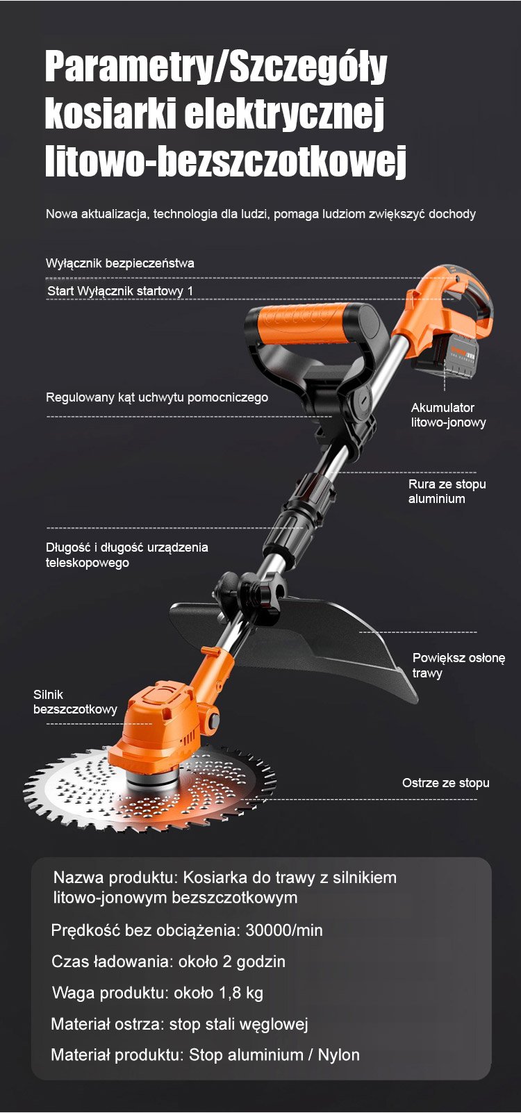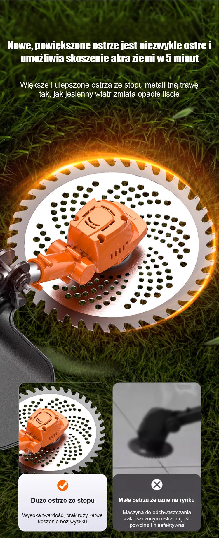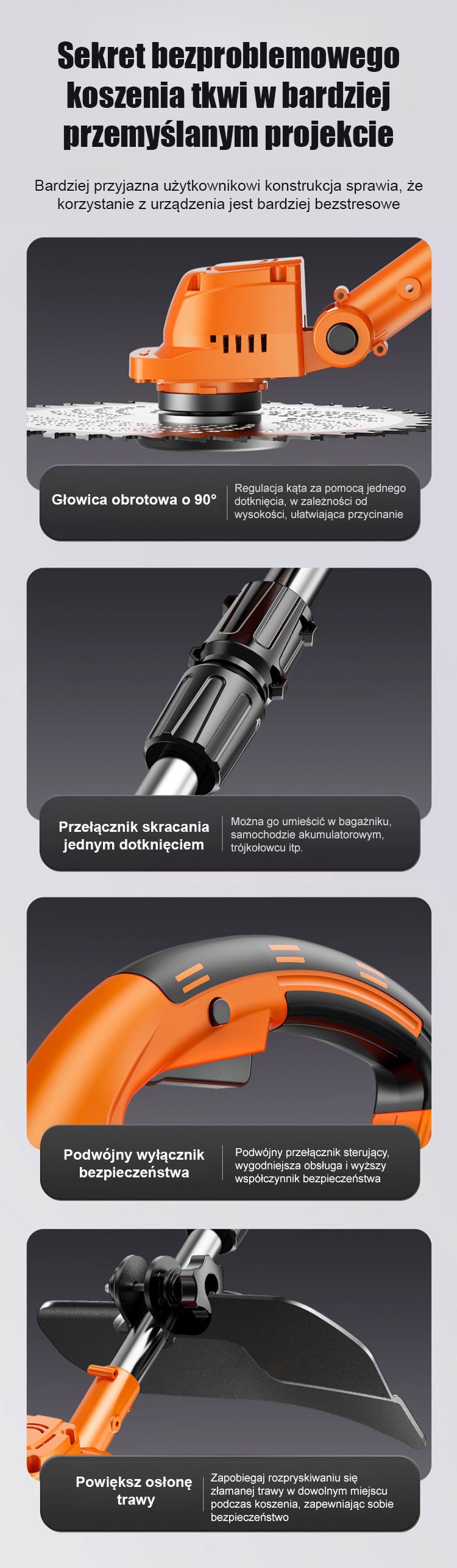 Wygodna kosiarka ręczna z akumulatorem litowym