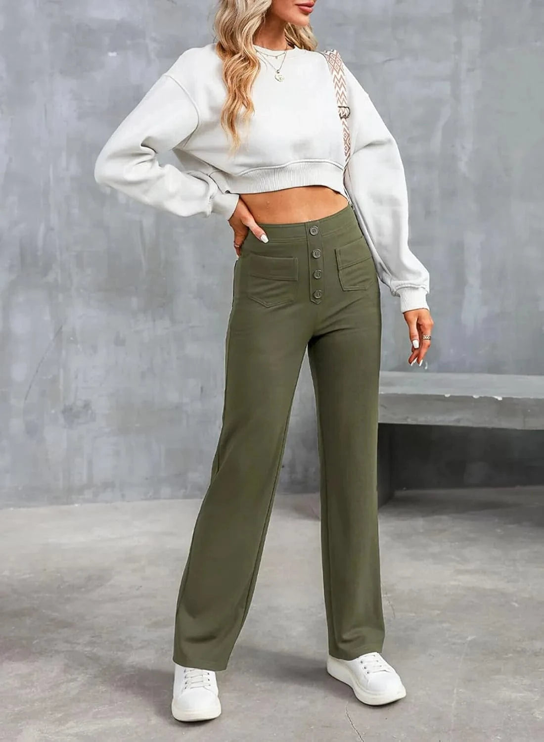 ♻ Stylowe detale guzików: Kto powiedział, że guziki muszą być tylko funkcjonalne? Nasze spodnie mają piękne akcenty guzikowe.