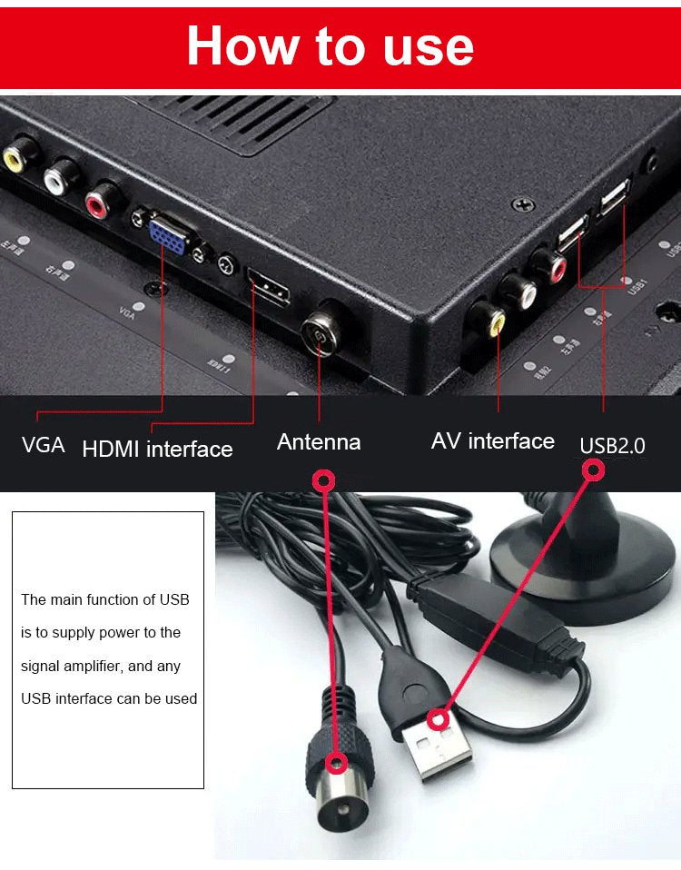 ŁATWA INSTALACJA-Ta antena nie musi być podłączona do WI-Fl. Wystarczy złącze do podłączenia telewizora Nie są wymagane żadne inne ustawienia. Włącz przełącznik zasilania, możesz natychmiast oglądać to, co chcesz oglądać.