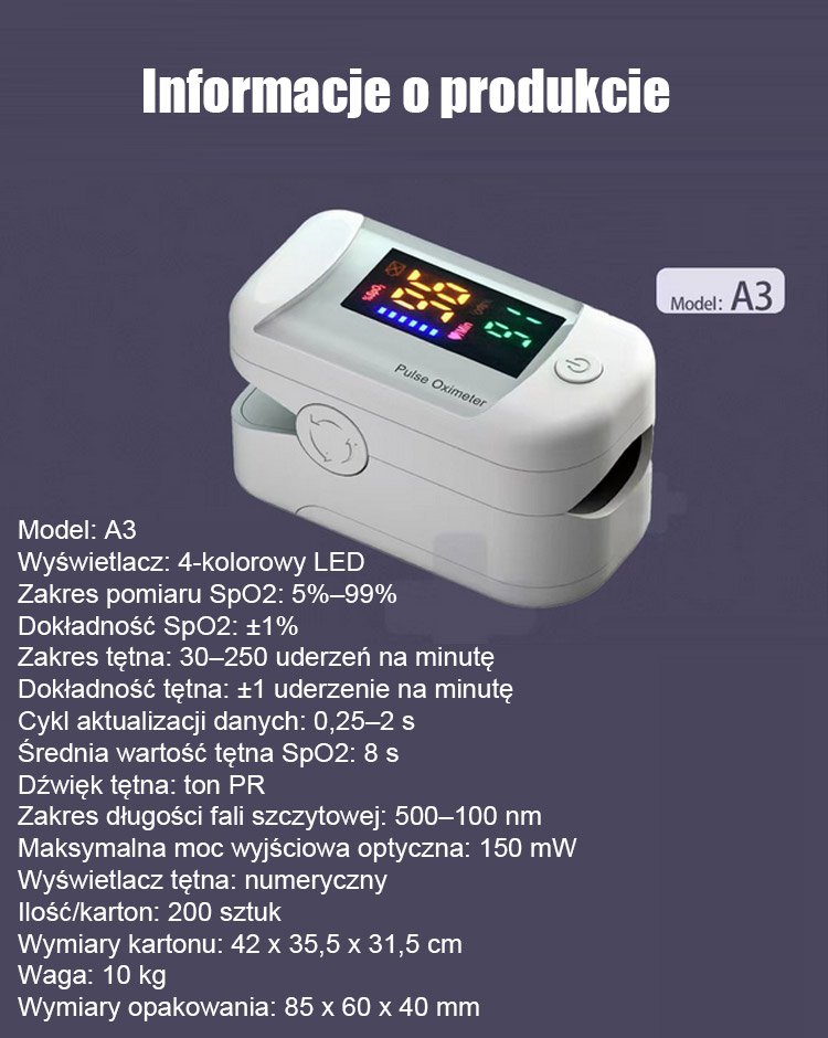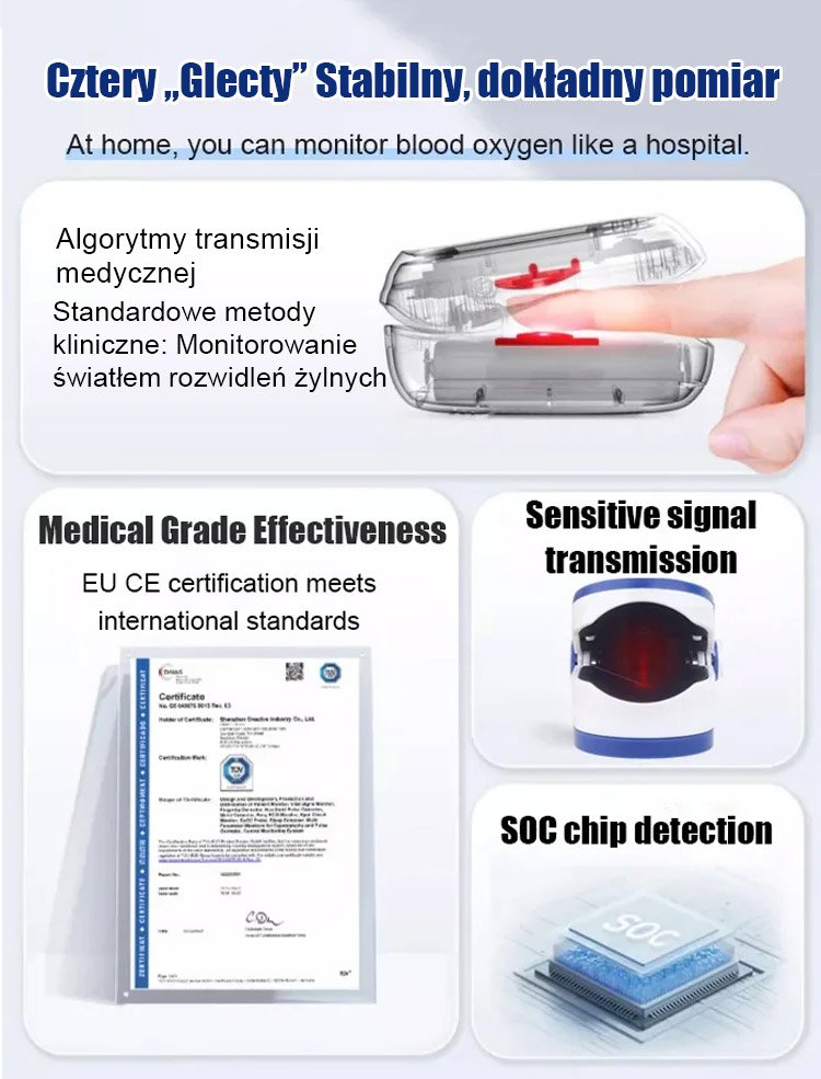 Pulsoksymetr o wysokiej rozdzielczości z klipsem na palec