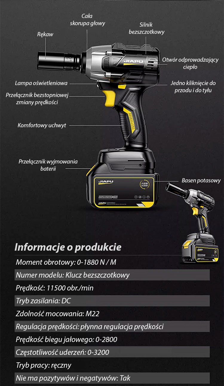 Duży moment obrotowy akumulatorowy klucz udarowy