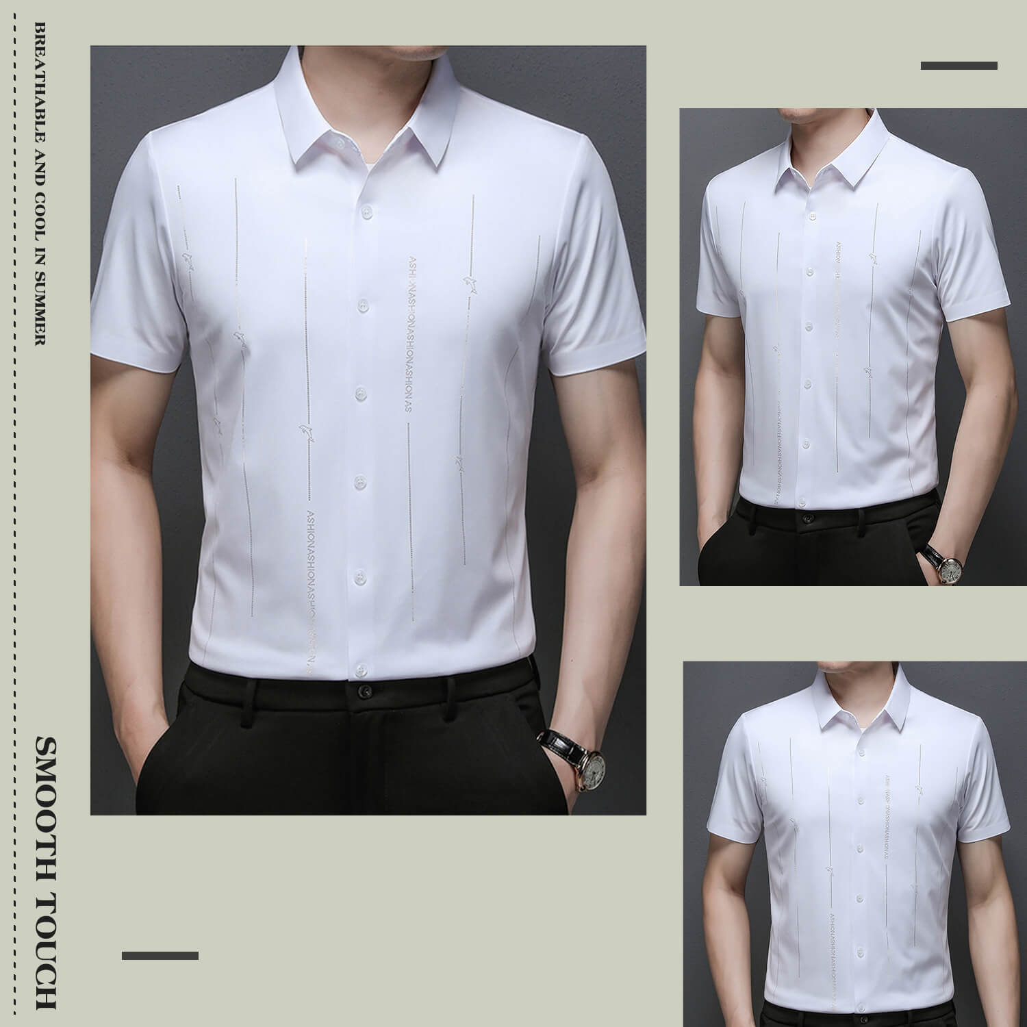 ❄️Męska koszula z jedwabiu lodowego o wysokiej elastyczności i odporności na zagniecenia