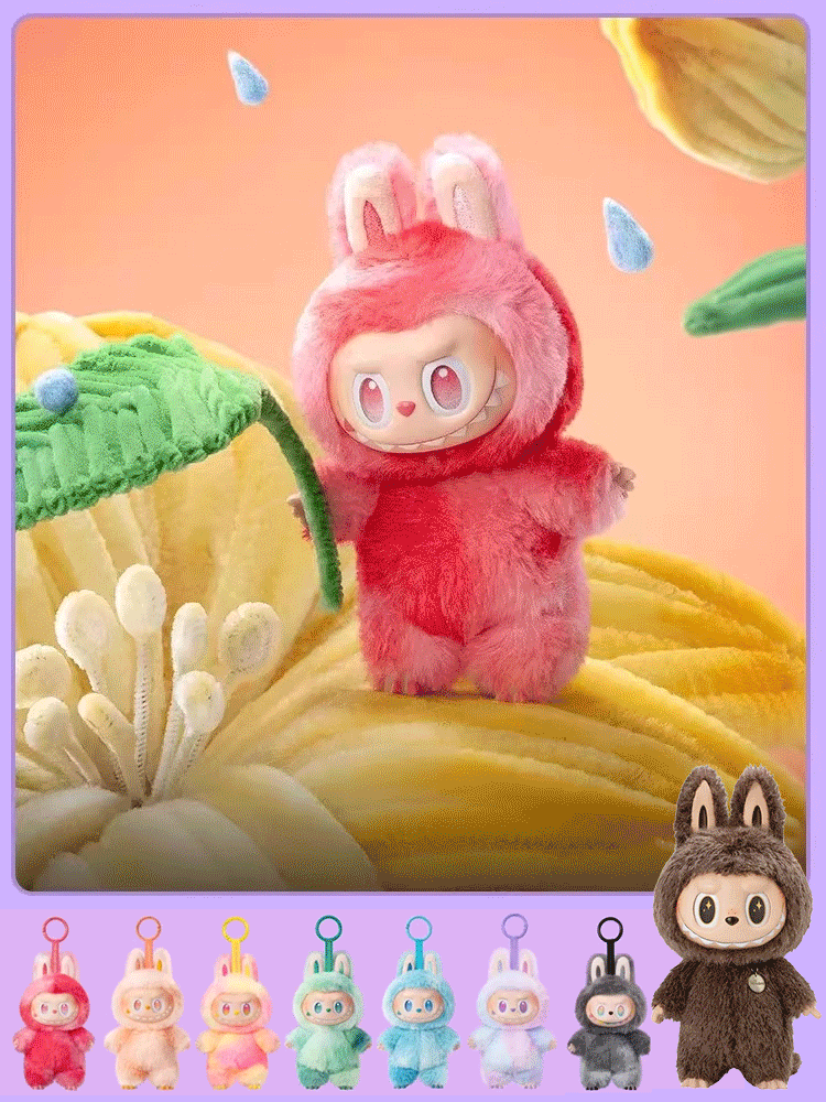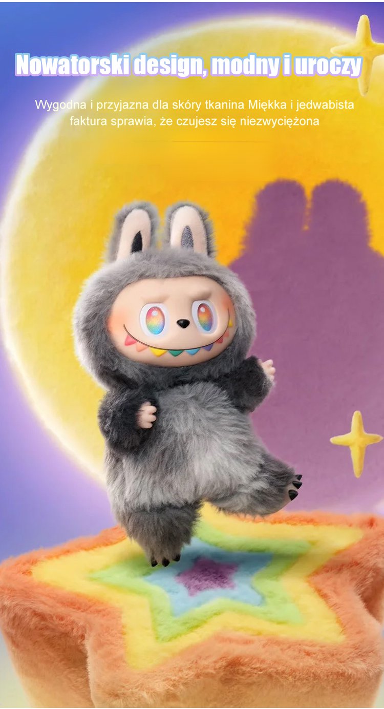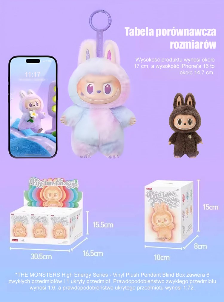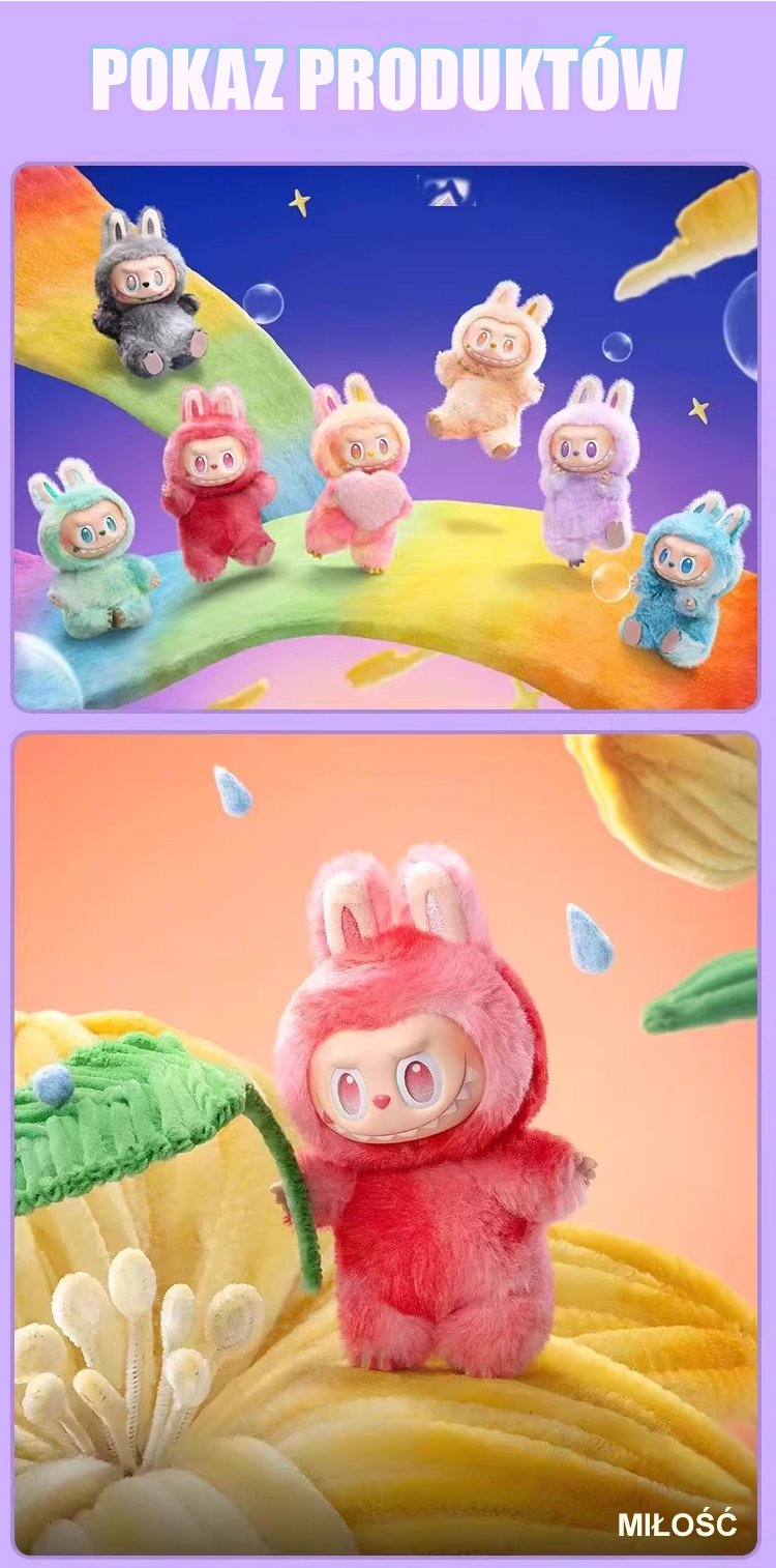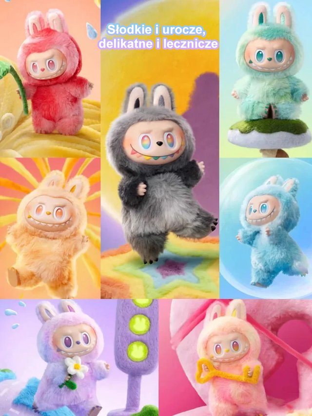 Trzy generacje pluszowych zabawek w pudełku niespodziance.