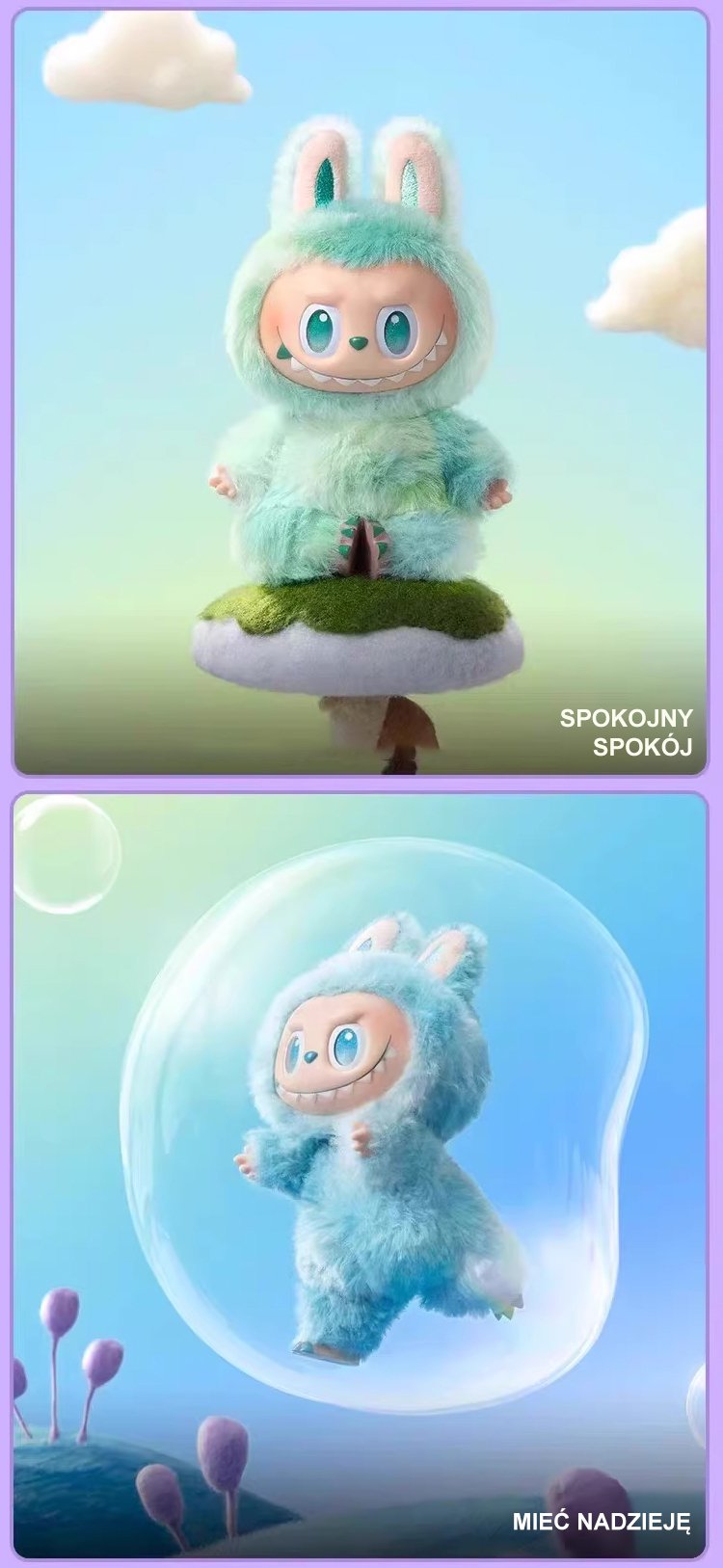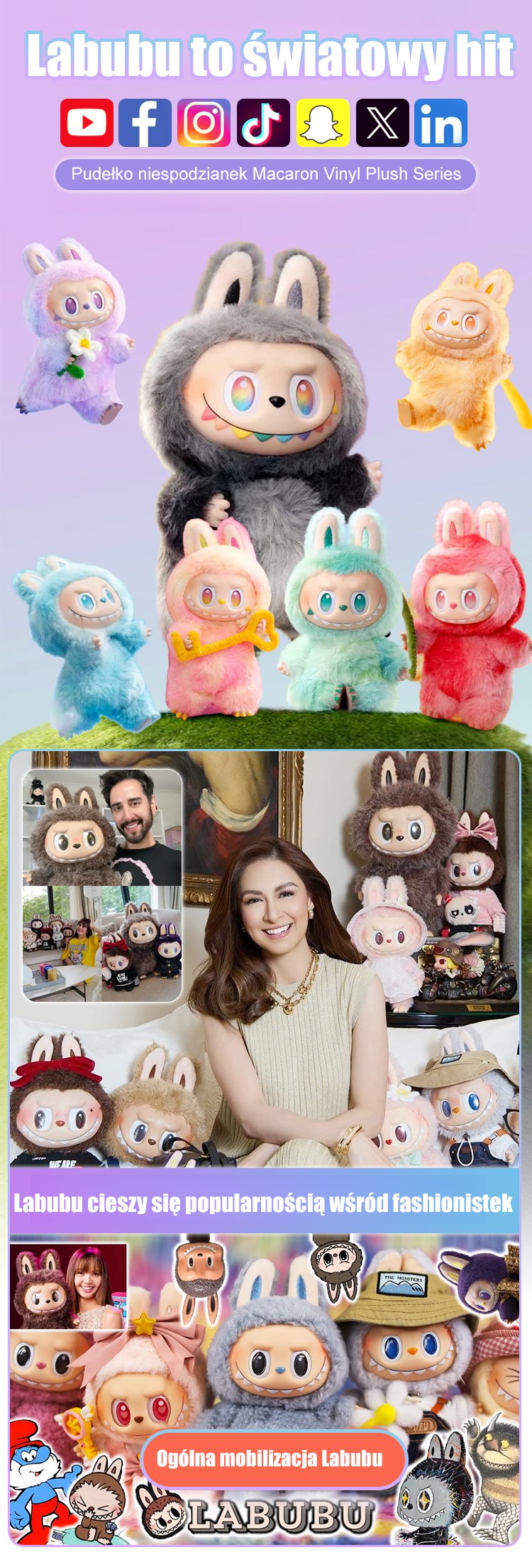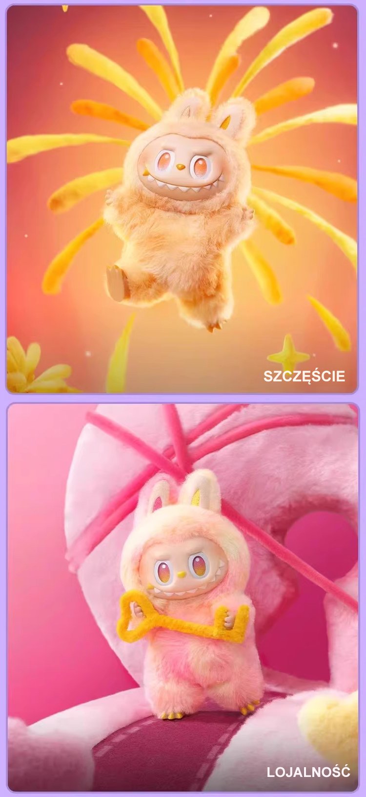 Trzy generacje pluszowych zabawek w pudełku niespodziance.