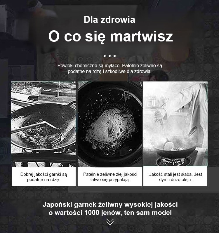 【Zdrowa patelnia bez powłoki】Czyste żelazo, nieprzywierająca.