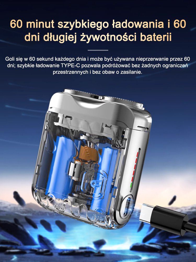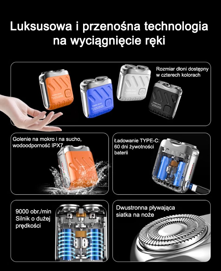 Mała stalowa maszynka do golenia z zawieszonym ostrzem magnetycznym