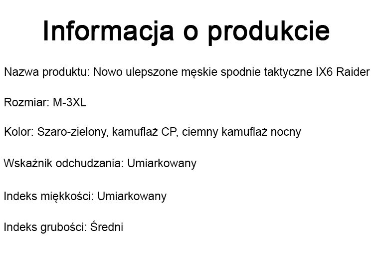 Nowe spodnie taktyczne IX6 Raider dla mężczyzn