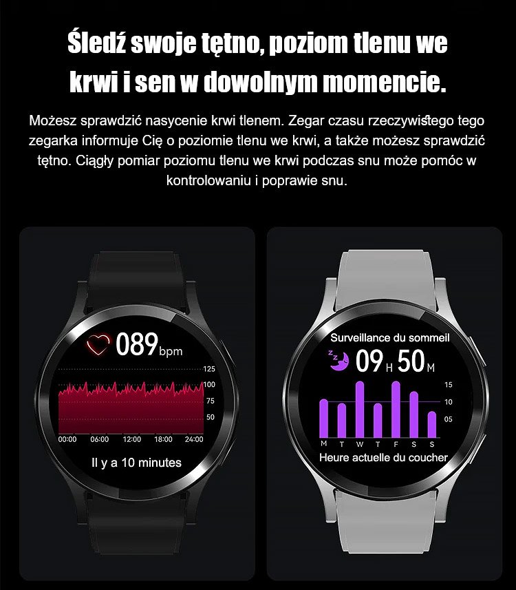 Zegarek do pomiaru poziomu cukru we krwi ze stalowym paskiem