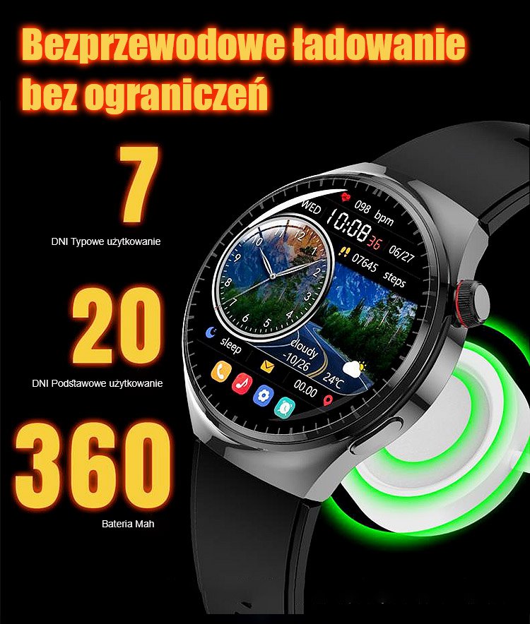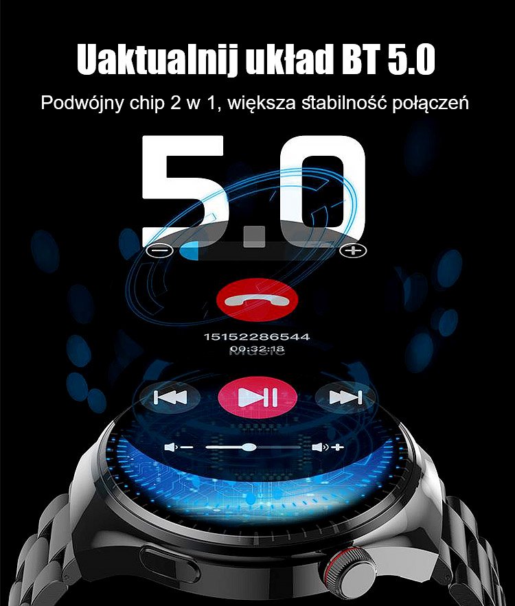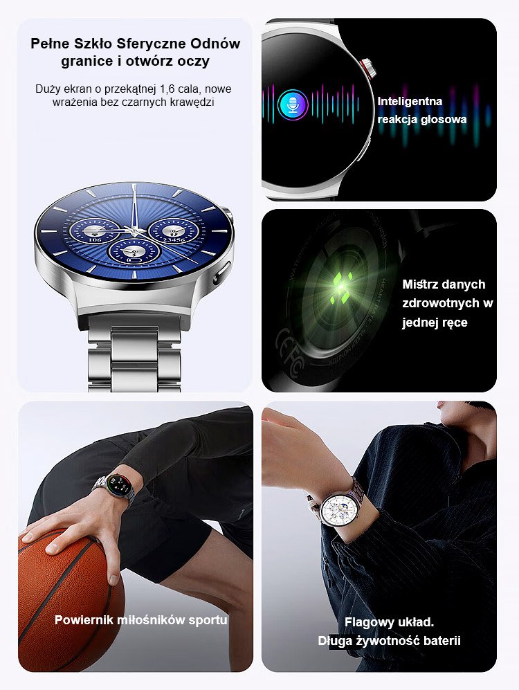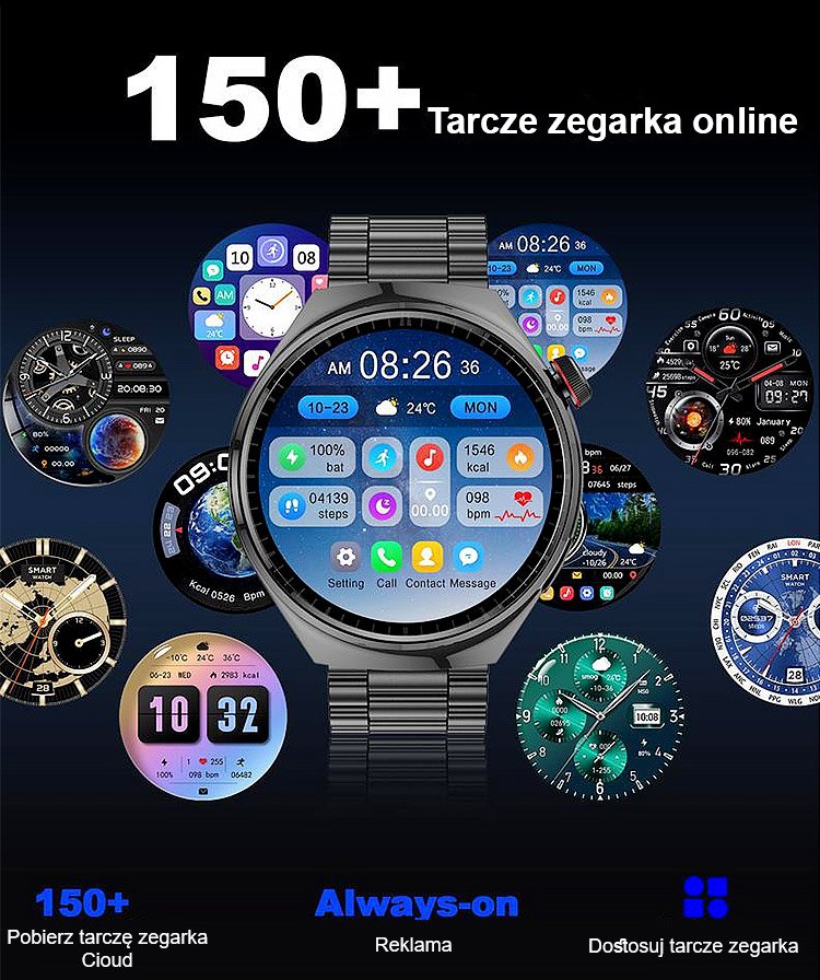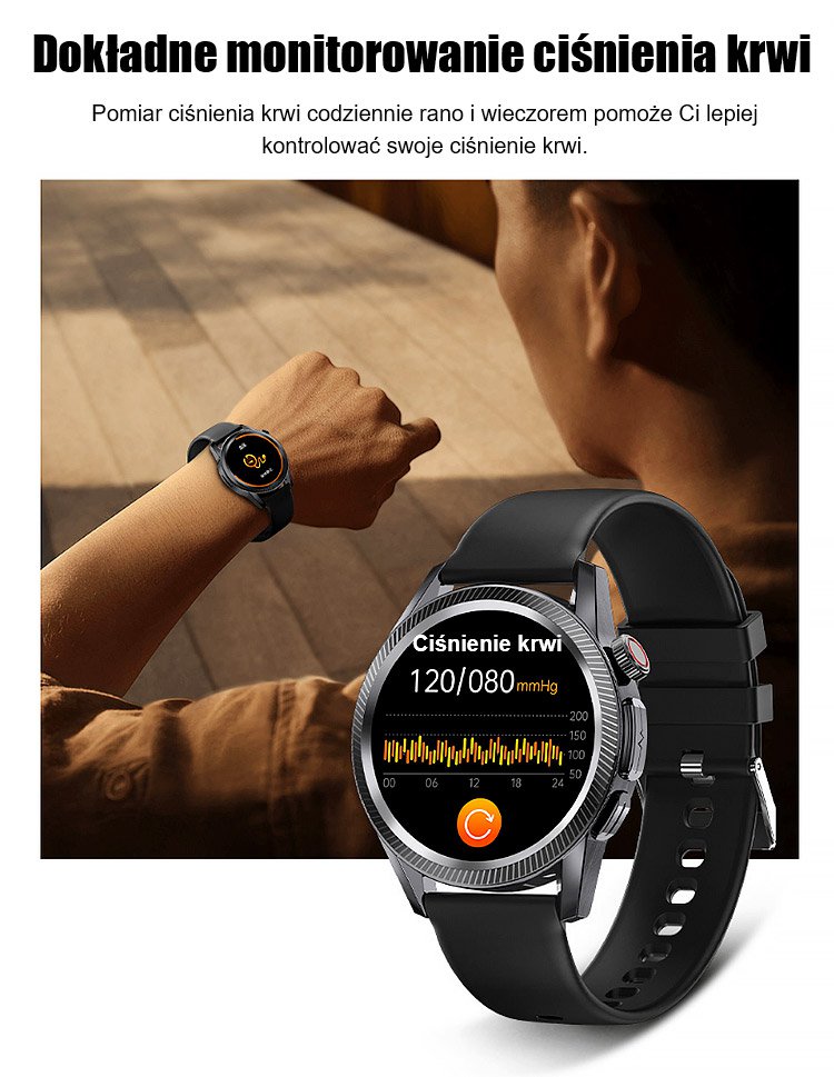 Zegarek do pomiaru poziomu cukru we krwi ze stalowym paskiem