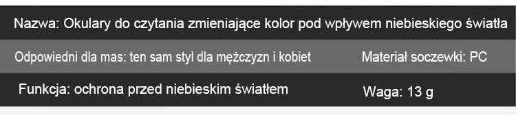 Zmieniające kolor okulary do czytania chroniące przed niebieskim światłem